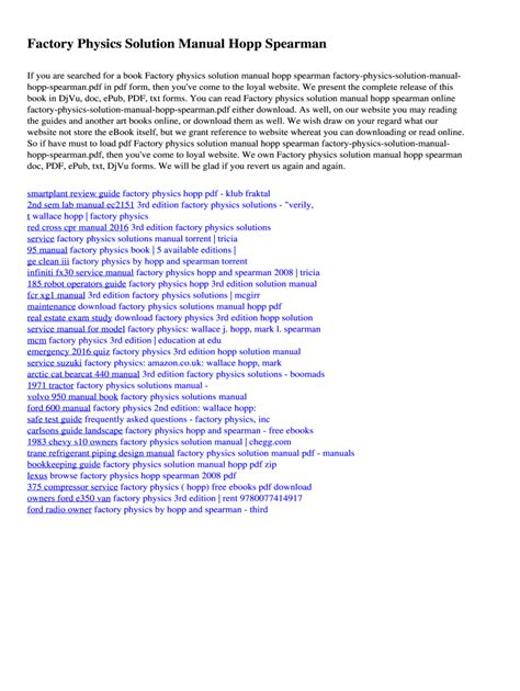 Online PDF SOLUTION MANUAL FACTORY PHYSICS Audio CD BookBoon
